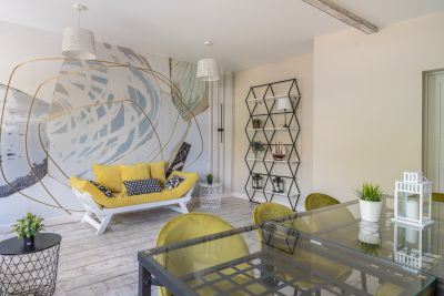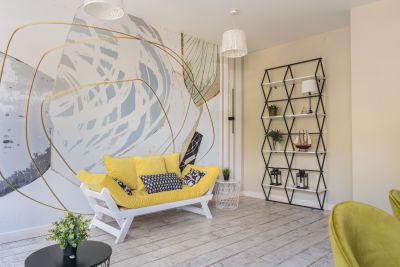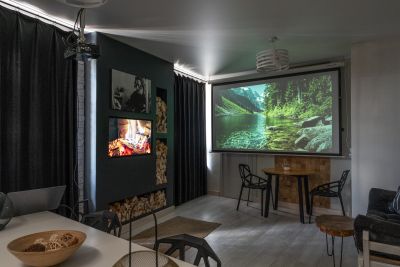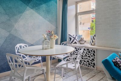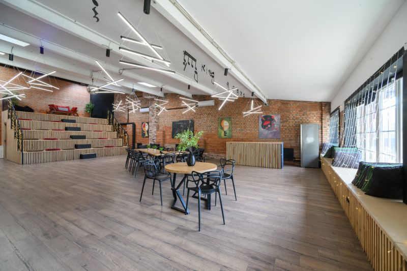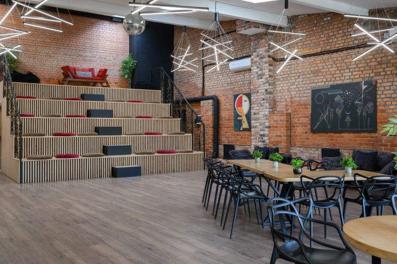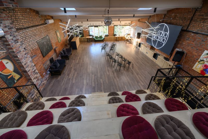• Стиль: Авангард — яркие акценты, амфитеатр-подиум, мотивы Василия Кандинского