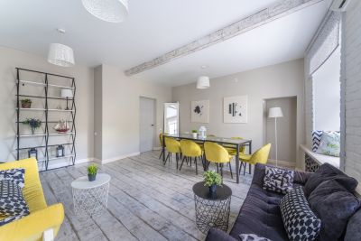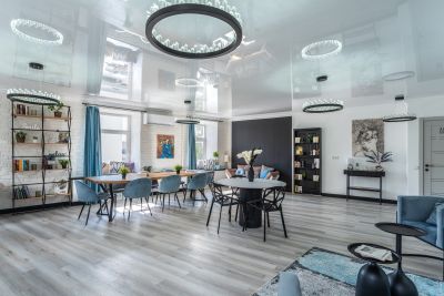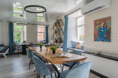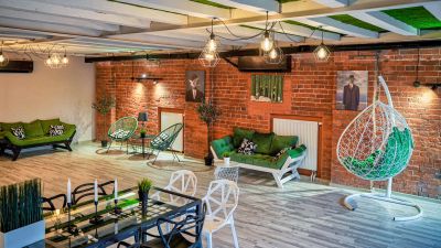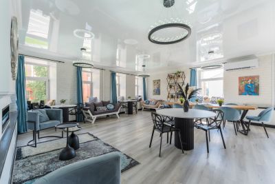 • Площадь: 150 м², мансардный этаж, высокий потолок