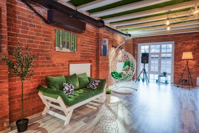 • Мебель: Амфитеатр из мягких кресел, диваны, мобильные столы
