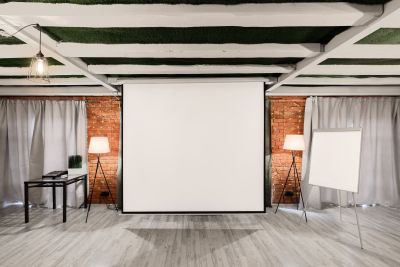 • Техника: Проектор + экран, флипчарт, кликер, колонки, микрофон, проводной интернет