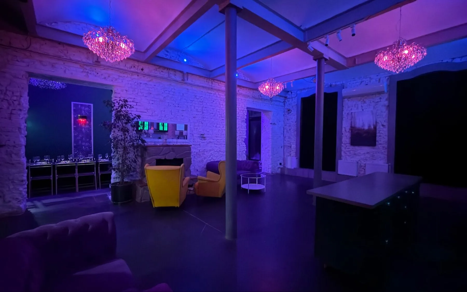 Мы рады предложить вам удобное пространство с арочными потолками, хрустальными люстрами, шикарным дубовым столом, выходом на собственную веранду и настоящим камином с живым огнем.