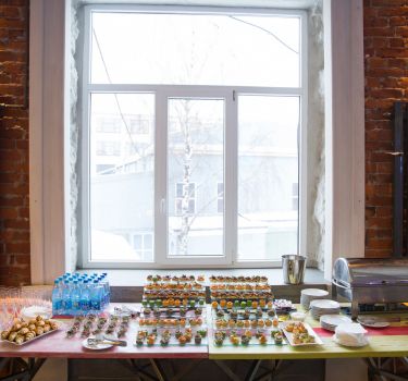 Вместимость: банкет 100 чел, фуршет 150 чел, вечеринка 200 чел.