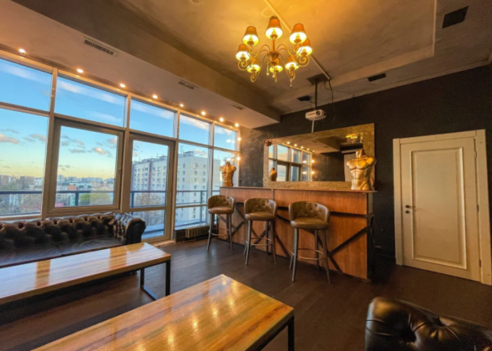 Дизайнерский 2х комнатный лофт с панорамным видом на город, проектором, баром и прилегающей верандой с лаунж зоной на крыше.