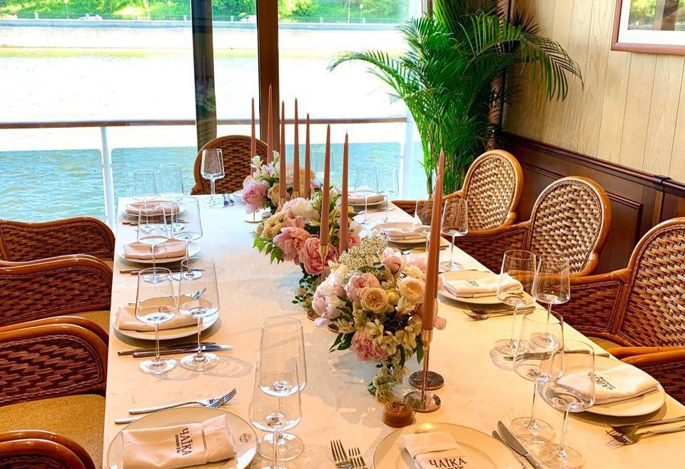 Панорамный вид на Москву-реку и достопримечательности столицы, авторская средиземноморская кухня, бесплатная парковка с сервисом и даже возможность запуска салюта с воды – все это главные преимущества банкетных залов на Москве-реке.