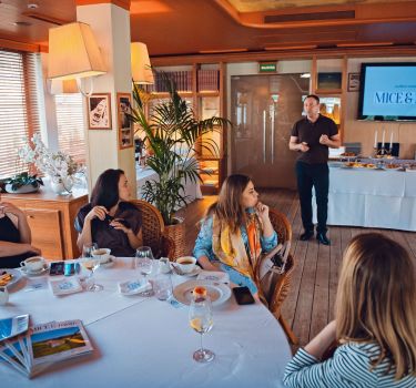 Фешенебельный ресторан-яхта в центре Москвы с 8-мью банкетными залами и 7 vip-кабинетами отлично подойдет для проведения мероприятий любого формата. Локальная банкетная служба корабля поможет организовать ваш праздник полностью «под ключ» в атмосфере высоких стандартов яхтенного гостеприимства.