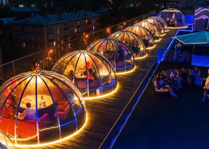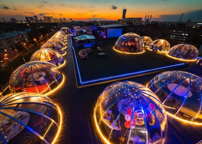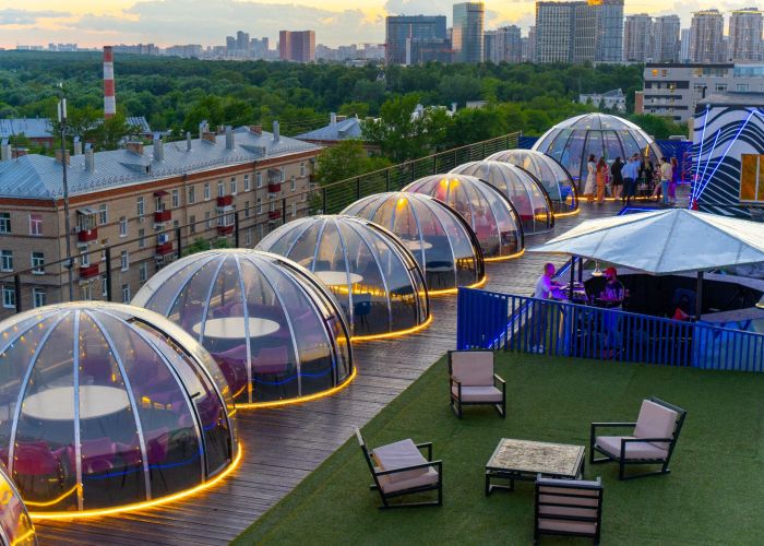 Мы предоставляем в аренду индивидуальные купольные беседки для праздничных событий и романтических свиданий на крыше.