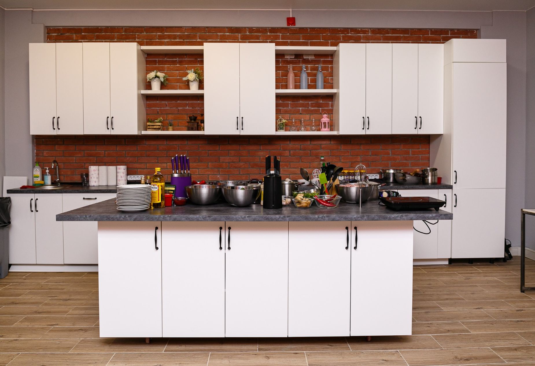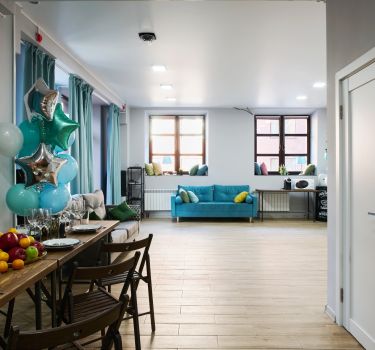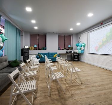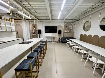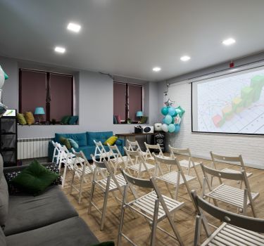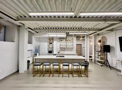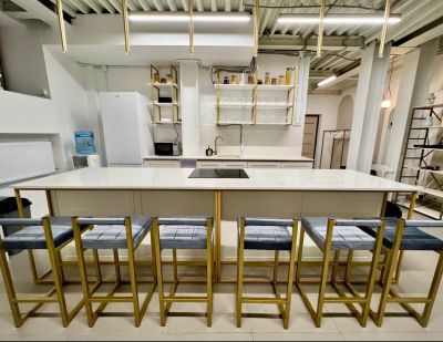 На площадке есть все необходимое для проведения вашего мероприятия: большая кухня с островком, любая необходимая посуда, инвентарь, бытовая техника, большой телевизор 75 дюймов, аудиосистема behringer, мягкий диван, столы, стулья, холодильник, зона гардероба, туалетная комната внутри лофта.