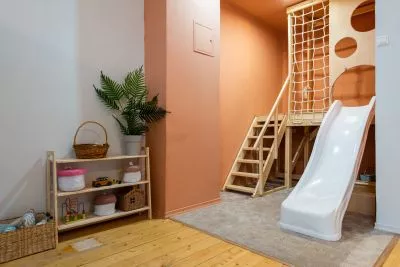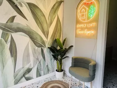 Двухэтажный лофт площадью 45 м2 с отдельной игровой, сухим бассейном, отдельным входом и собственной летней верандой.