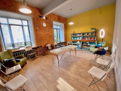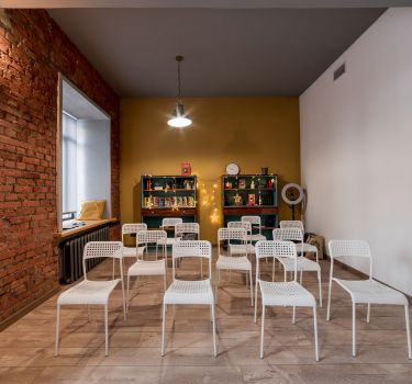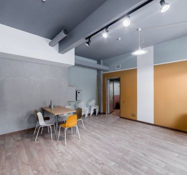 - Универсальная планировка – легко трансформируется под разные форматы мероприятий: вечеринки, квартирники, лекции, тренинги, фото и видеосъемки, йога и телесные практики.