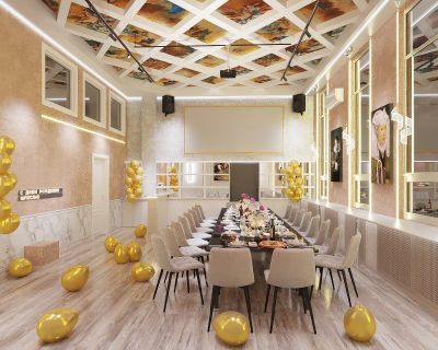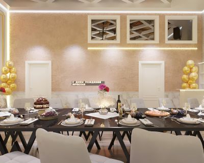 • Украшение зала (оформление шарами, стильные фотозоны)