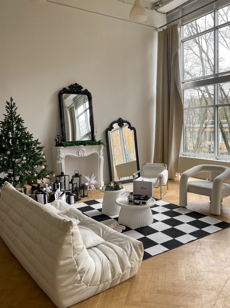 На данный момент зал украшен к новому году (декор есть на последних фотографиях). При необходимости декор можно сдвинуть в угол зала.