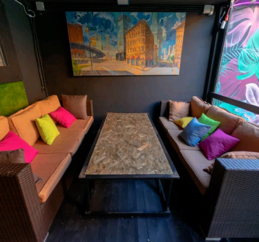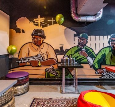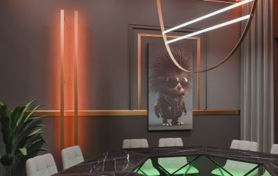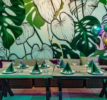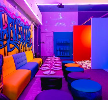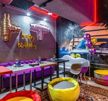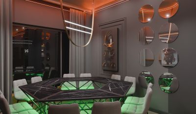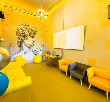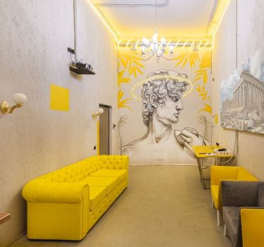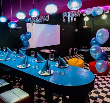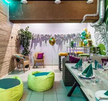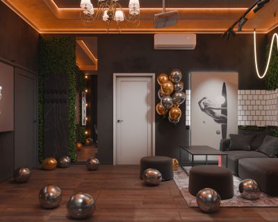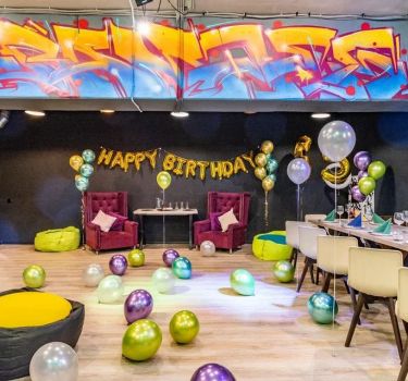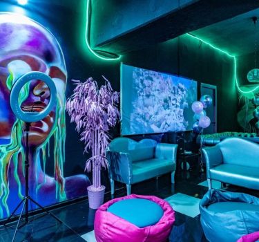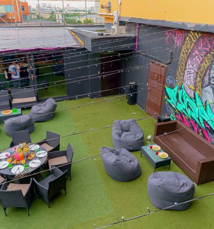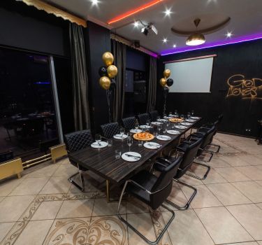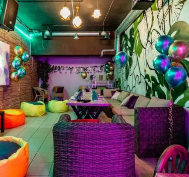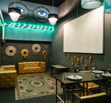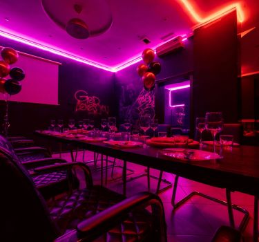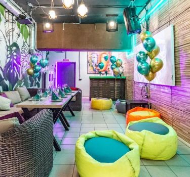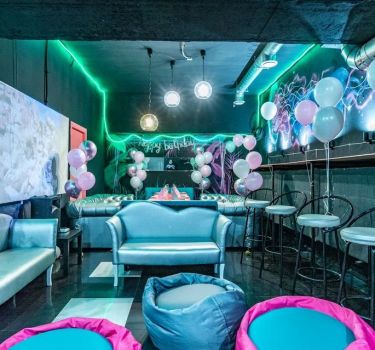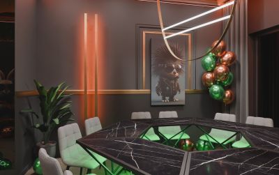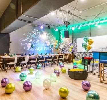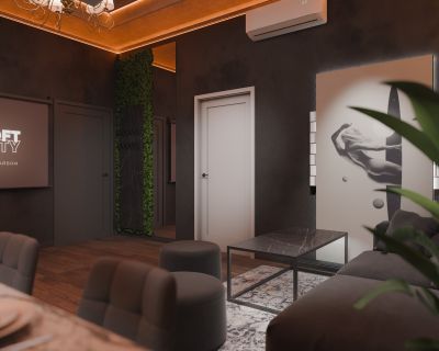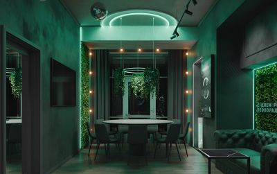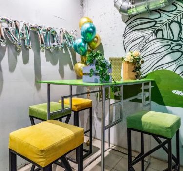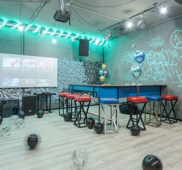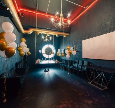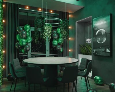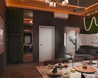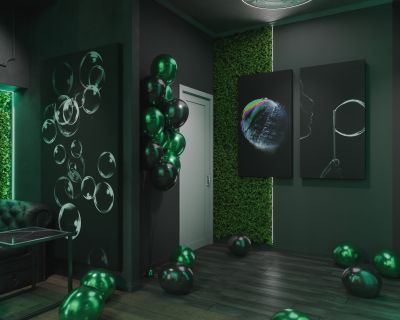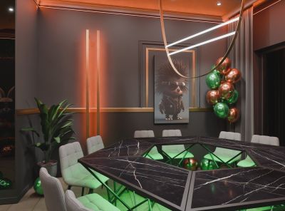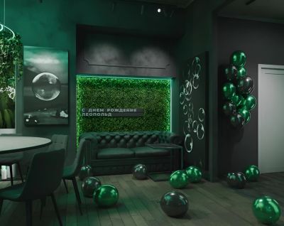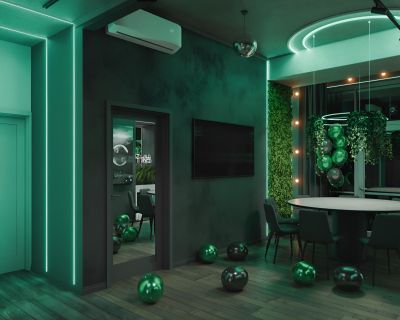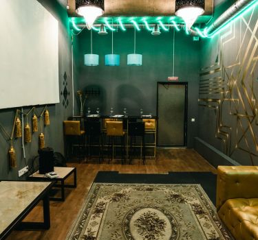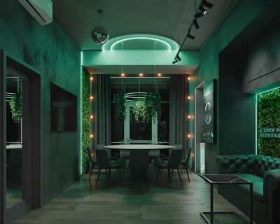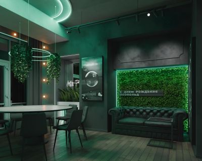 Лофт впечатляет лаконичным и стильным дизайном с темными стенами, зелеными акцентами и оригинальными картинами. Здесь царит атмосфера роскоши и уюта, что идеально подходит для особых мероприятий. Лофт отлично подойдет для празднования дня рождения, делового ужина или корпоратива. Вместимость до 40 человек.
