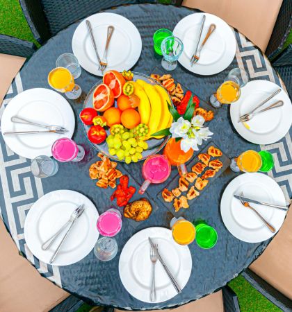Вы можете принести свою еду и напитки или заказать блюда от нашего партнера.