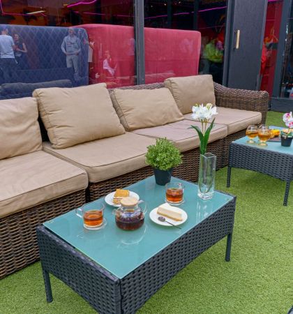 1. Лаундж-зона с удобной мягкой мебелью и столом, где можно:
