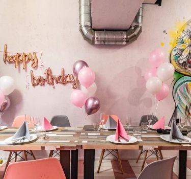 • Украшение зала (оформление шарами, стильные фотозоны)