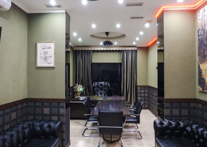 Музыкальной системой, караоке, баром, проектором, светомузыкой, комфортной мягкой мебелью и полноценной ванной комнатой.