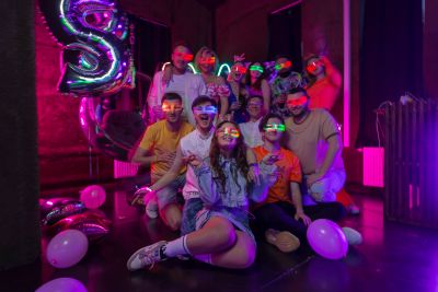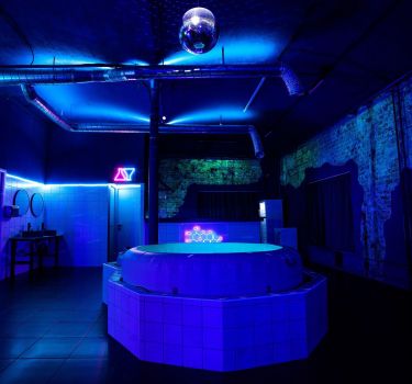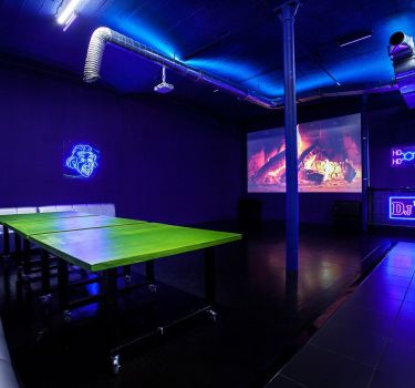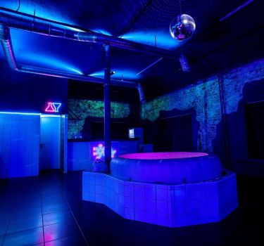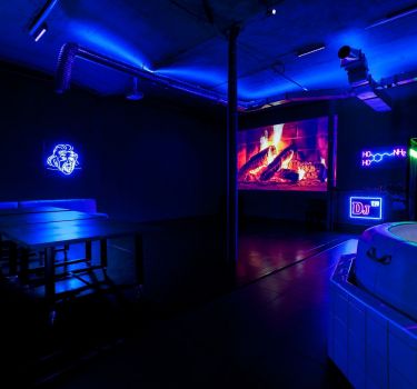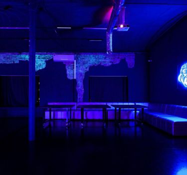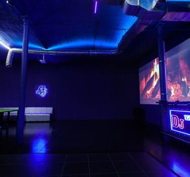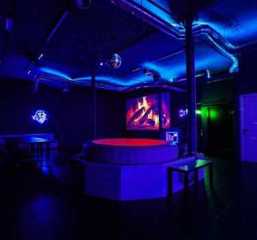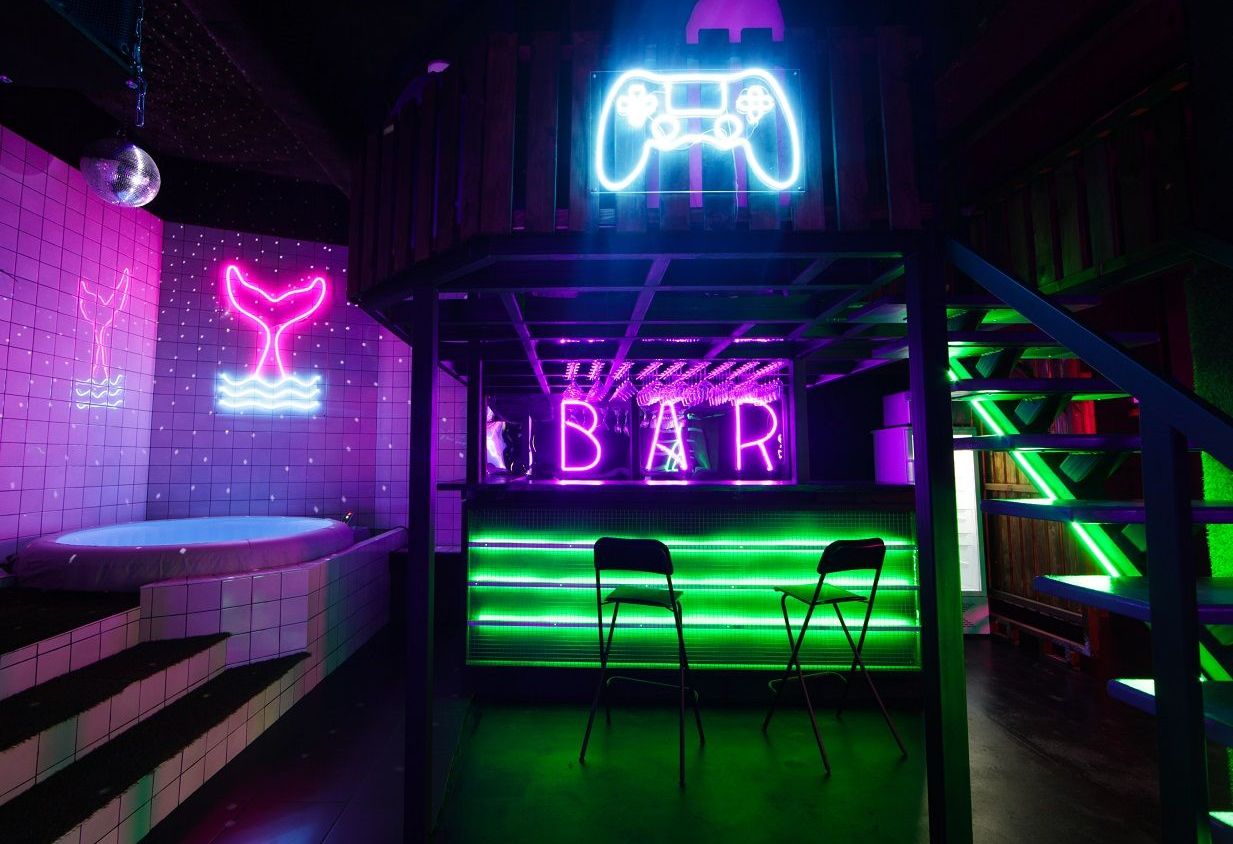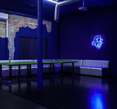 Дизайнерский неоновый зал, специально оформленный в стиле клубной vip комнаты.
