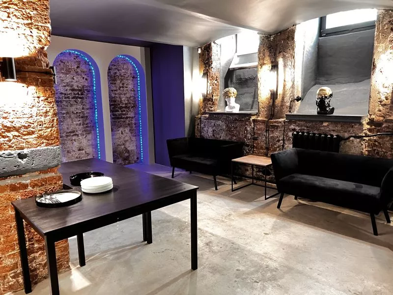 Планируете устроить грандиозную вечеринку с большим количеством гостей? Превосходно подойдет под стиль любого мероприятия. На специально подготовленной грифельной стене можно вести лидерскую таблицу по количеству выпитых шотов и не только! Акустическая система отлично подойдет как под ночь караоке, так и для своей собственной дискотеки, а светящиеся арки вместе со старинным кирпичом - для крутых фотосессий.