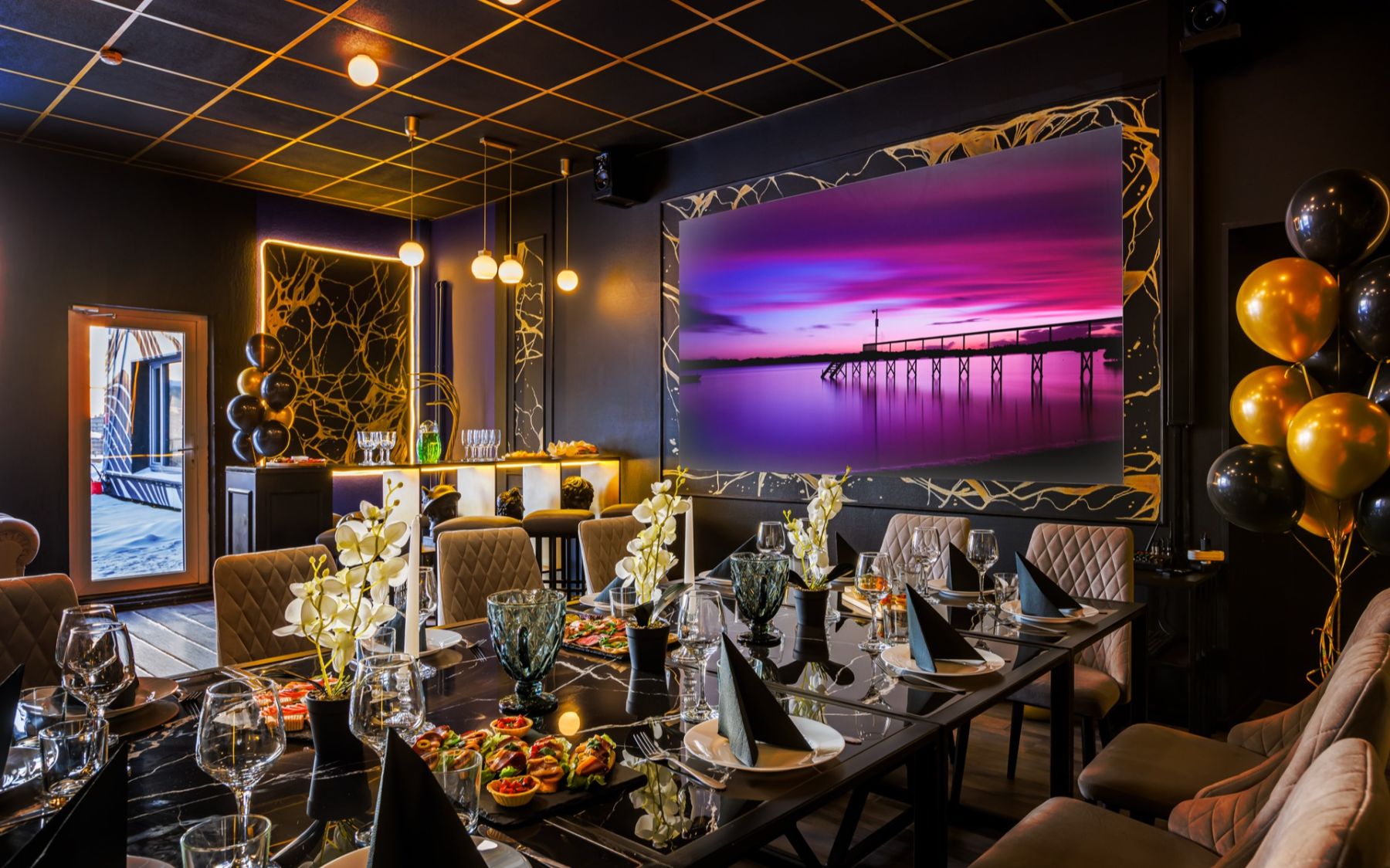 • Украшение зала (оформление шарами, стильные фотозоны)
