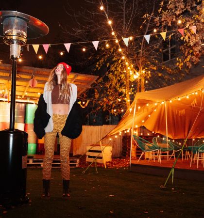 - Большая уличная территория с мебелью, баром, грилем и елкой на Новый год;