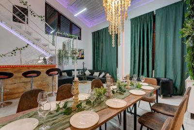 Площадь 85 кв.м вместимость от 15 до 35 чeлoвек, но мы не ограничиваем )