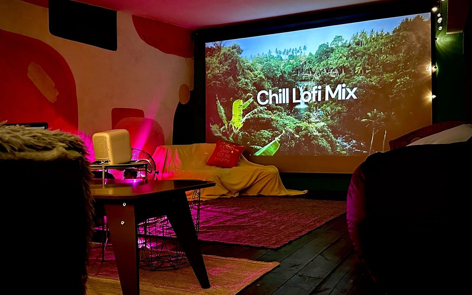- крутой звук, киноэкран, ps4 (по предварительному запросу) и микрофоны!