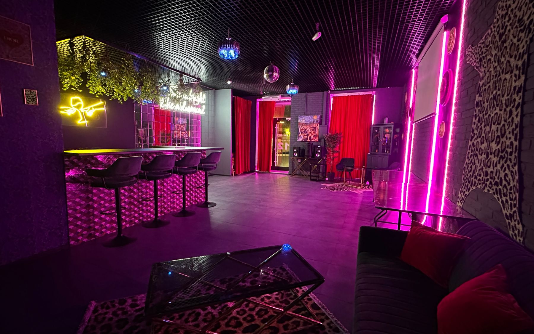 Prisma Loft - зал в ярких и контрастных тонах с неоновыми композициями на Бауманской