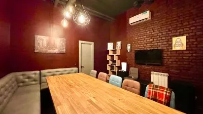 Светлый лофт на 20-30 гостей, идеальный для Вашего мероприятия. Красивые столы из массива лиственницы, высокие и удобные диваны. Огромные окна. Смарт-тв 65’, караоке-машина, хороший интернет. Кондиционер, кнопка вызова персонала.