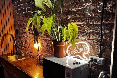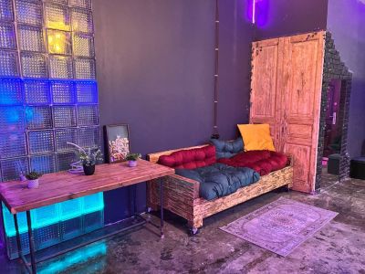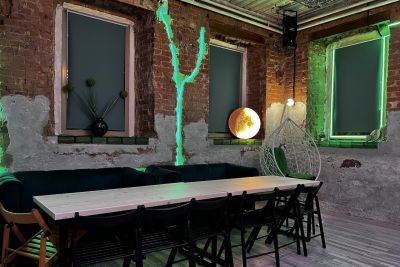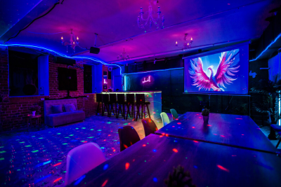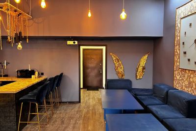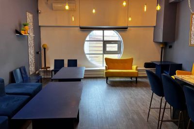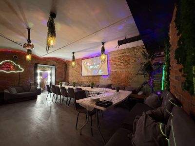 Его вместимость - до 35 человек, с площадью в 70м2. Идеален для проведения дня рождения, мальчишника, посвята, корпоратива, музыкального вечера, тренинга, мастер класса и много чего еще!