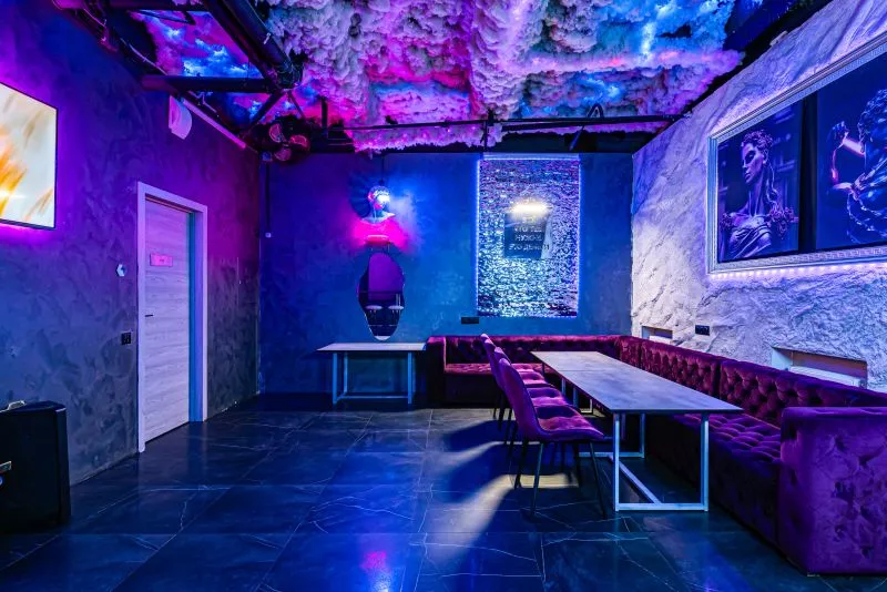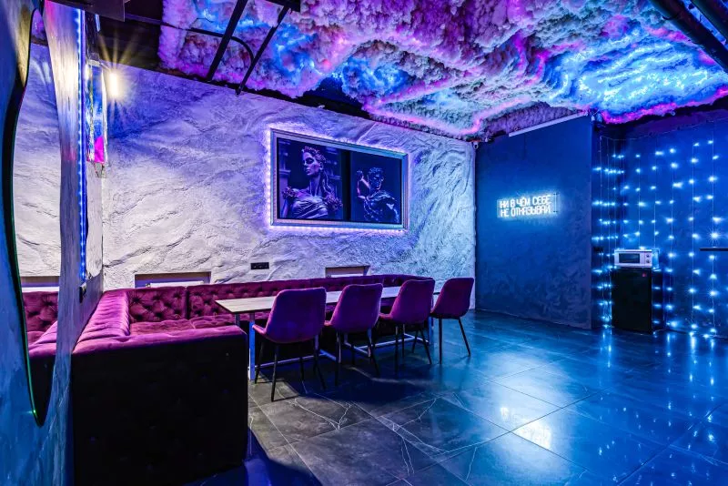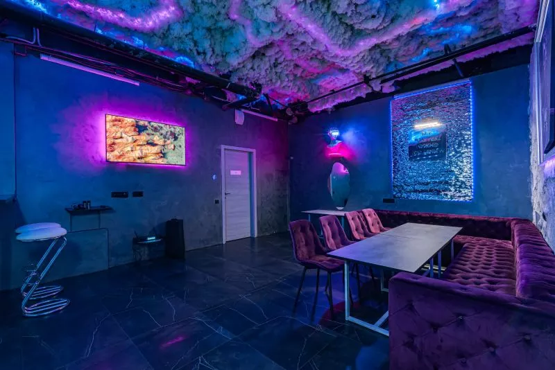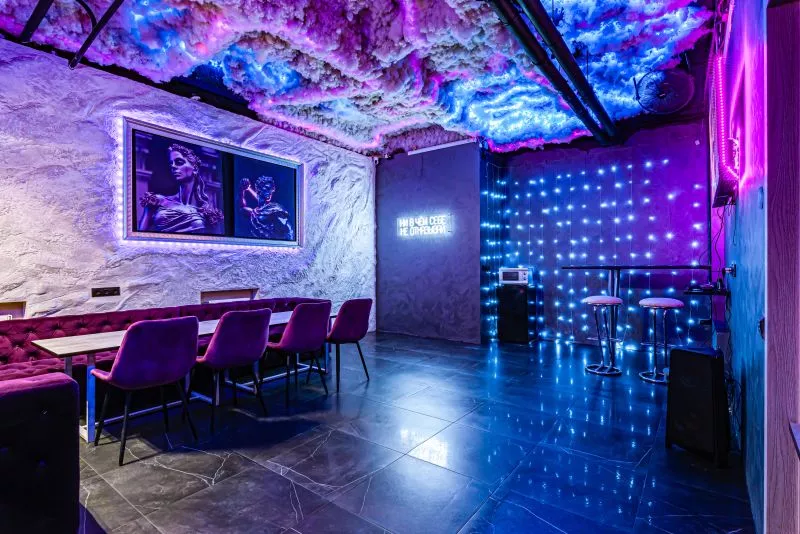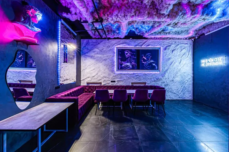 Неоновый лофт с потолком в виде пышных облаков для мероприятий любого формата (10-20 человек)
