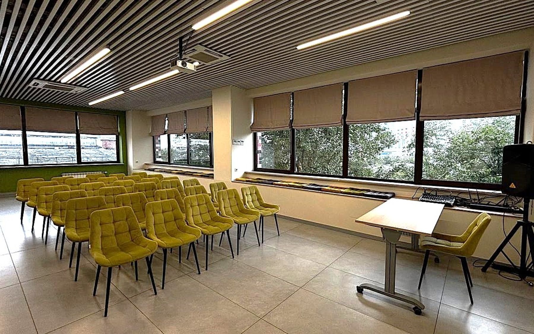 Просторный и стильный зал до 50 человек — идеально для тренингов, лекций, презентаций, съемок, киновечеров, бизнес-завтраков, камерных мероприятий, клиентской встречи, переговоров, вебинаров и корпоративов.