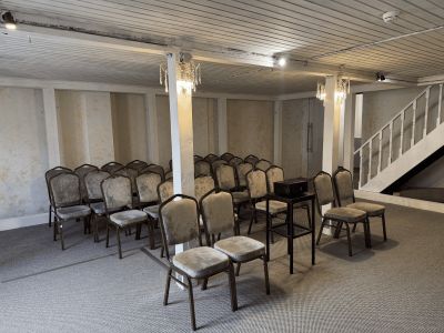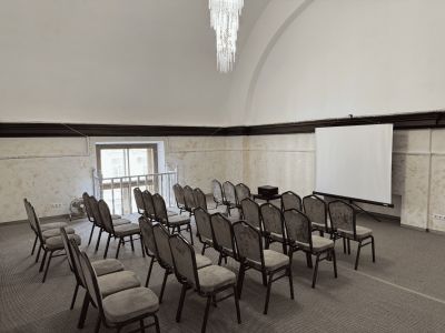 Исторически он предназначался для светских приемов, банкетов и балов, теперь же зал отреставрирован и готов принимать в своих стенах гостей для проведения торжеств любого масштаба. Идеальное пространство для тех, кто ценит эстетику сдержанной элегантности и утончённости.