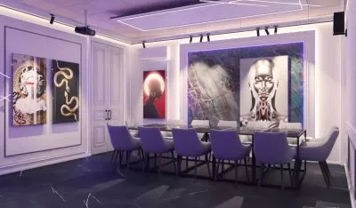 2. Зона общего стола с удобными мягкими креслами