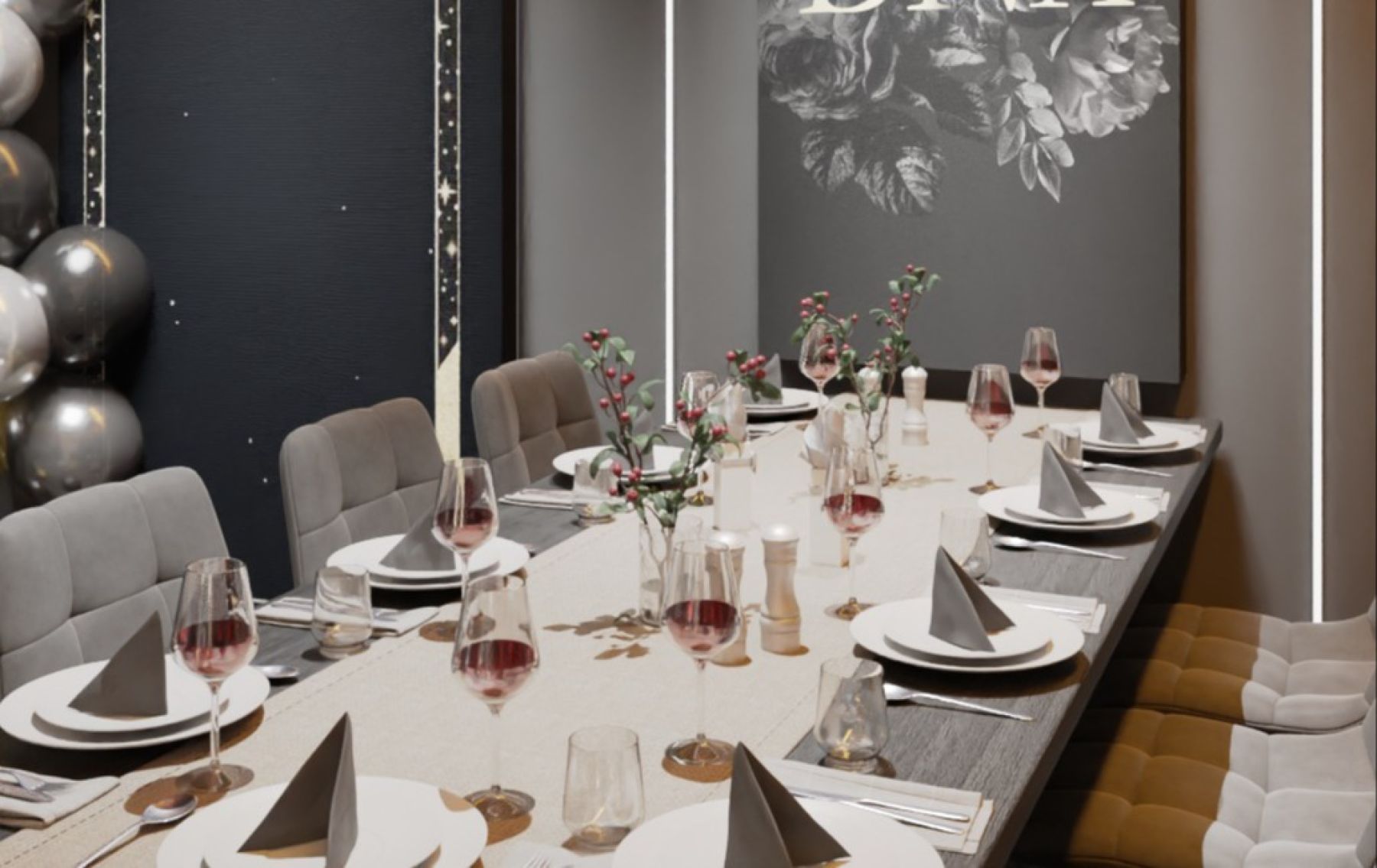 • Украшение зала (оформление шарами, стильные фотозоны)