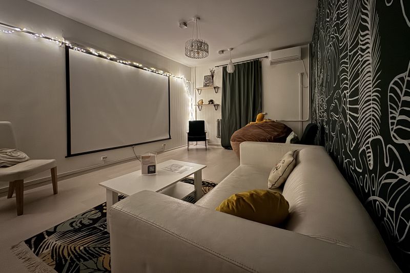 Приглашаем в стильный и уютный лофт в центре Москвы. Наслаждайтесь общением с друзьями, приватной обстановкой и новым подходом к организации отдыха. Тропический интерьер комнаты воссоздает атмосферу отпуска и наслаждения. Зал подойдет для дружеских встреч, мероприятий, свиданий и семейного просмотра кино. Рассчитано на компанию до 10 человек.
