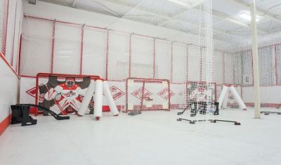 Кроме того, здесь есть просторные раздевалки, тренерские, комнаты для сушки формы и заточки лезвий, вместительная парковка, уютный ресторан и магазин экипировки.