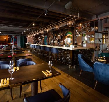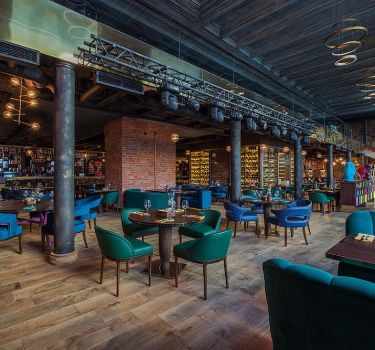 Площадь основного зала — 150 квадратных метров, а входной группы — 48 квадратных метров. В банкетном варианте можно разместить до 60 гостей, а в фуршетном — до 100 человек