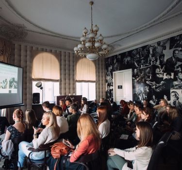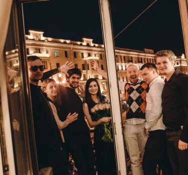 Зал находится на пересечении Невского проспекта и улицы Рубинштейна, вид открывается на обе улицы. Идеально подойдет для проведения праздников, концертов и др.