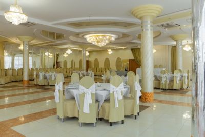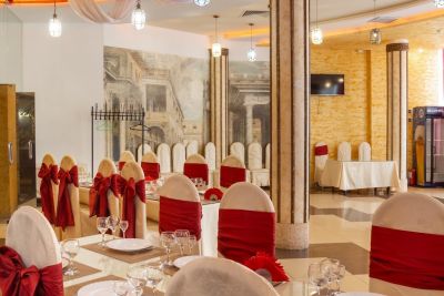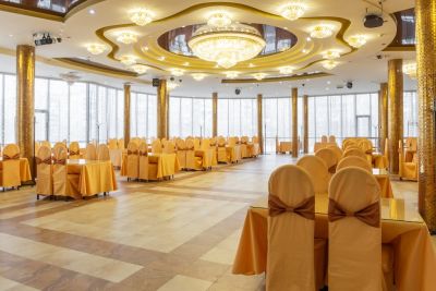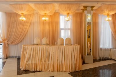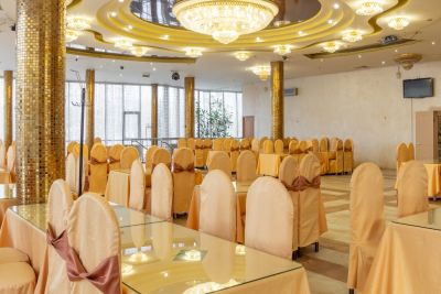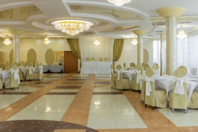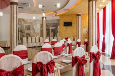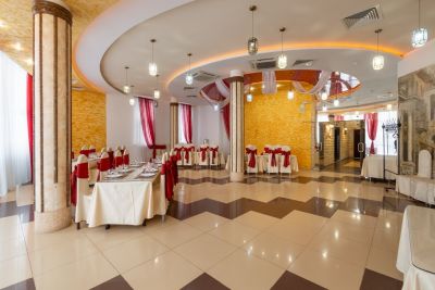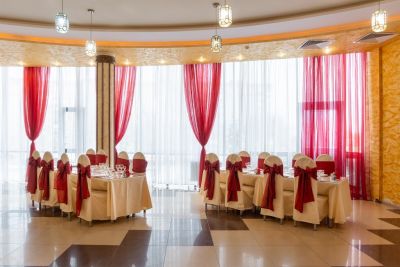 Предлагаем оборудованный банкетный зал и уютную атмосферу, которая подойдёт для любого торжества.
