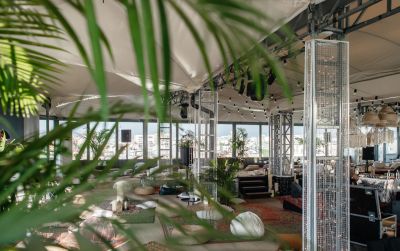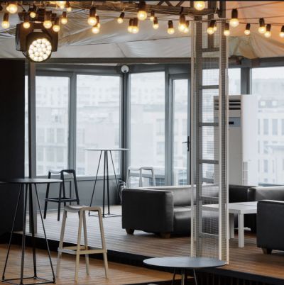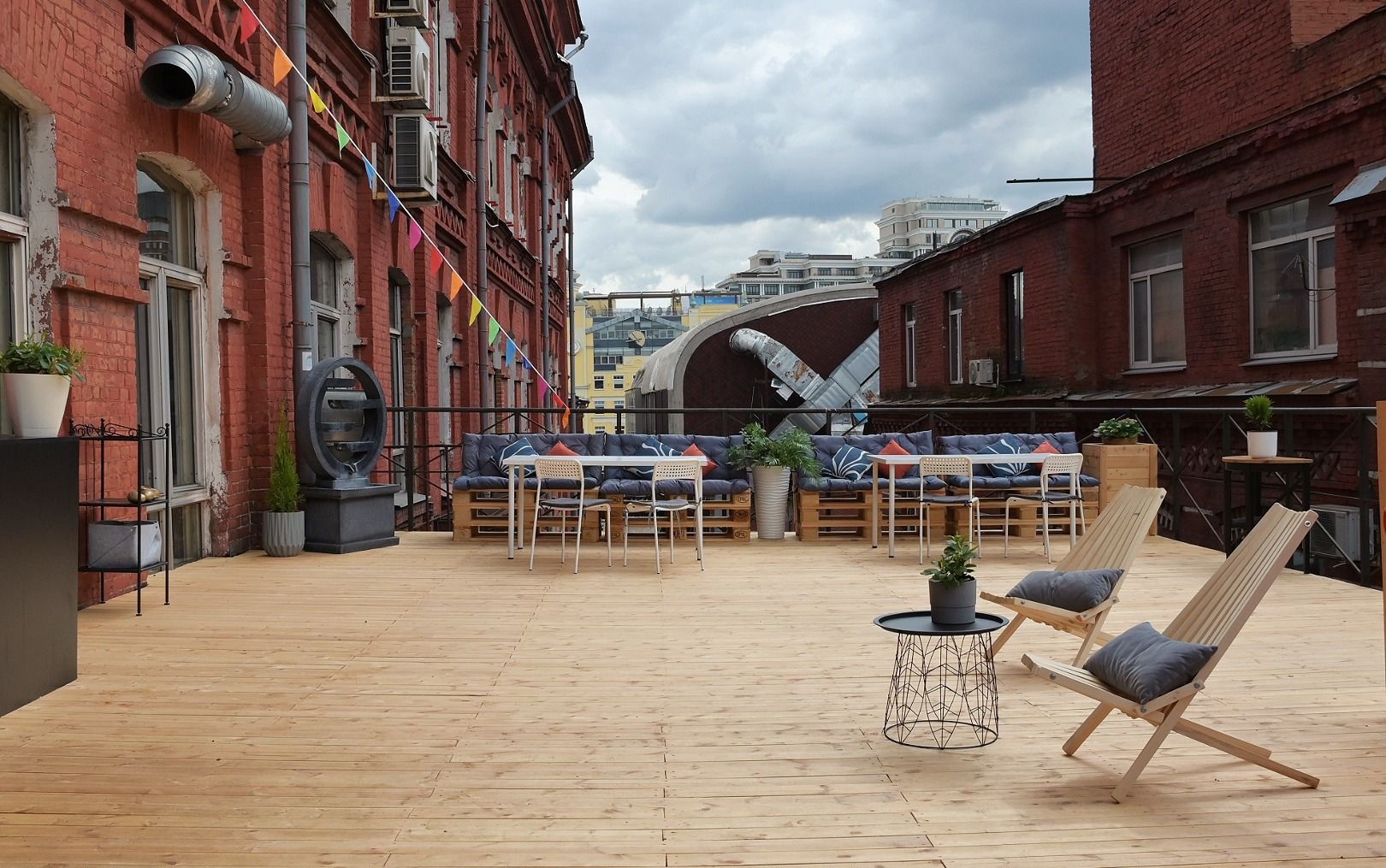 Современная площадка под открытым небом с мебелью для мероприятий любого формата и свободного общения.