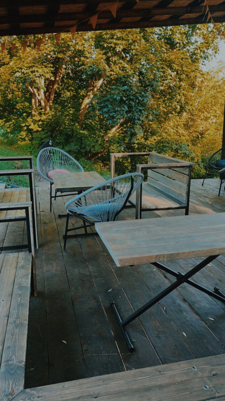30 удобных мест для сидения и 6 уютных столиков, где можно расставить тарелки с закусками и устроить пир.