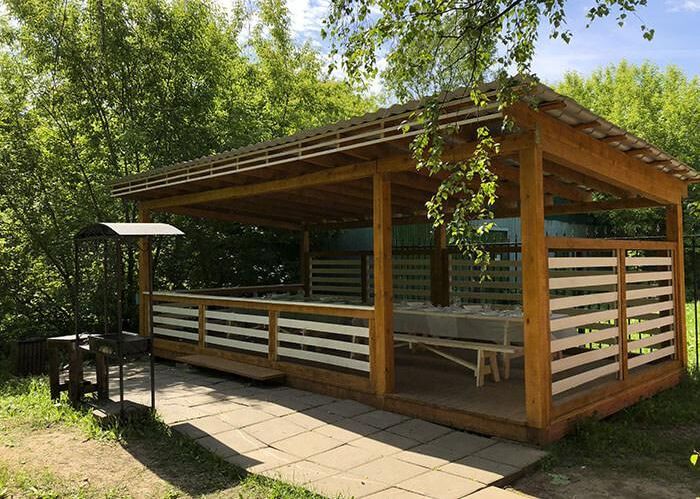 2. Стационарный мангал с надёжным навесом: обеспечивает комфорт и безопасность приготовления шашлыка.