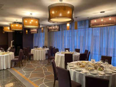 В ресторане есть своя кухня, возможность провести фейерверк, можно заказать свой алкоголь, есть номер для новобрачных, площадка подходит для проведения банкетов, фуршетов, конференций и других мероприятий.