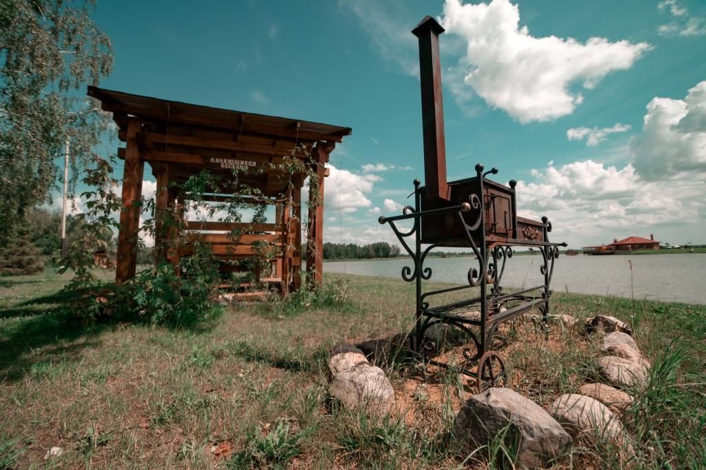 Рядом с беседкой расположен мангал, где можно приготовить ароматный шашлык, запечь на углях рыбу или овощи.