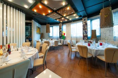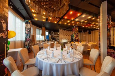 В кафе есть всё, что нужно для незабываемого праздника: большой банкетный зал с возможностью проведения выездных регистраций, просторная Welcome-зона, изысканная европейская, русская и восточная кухня, а также широкий выбор напитков и закусок.