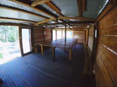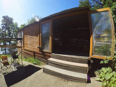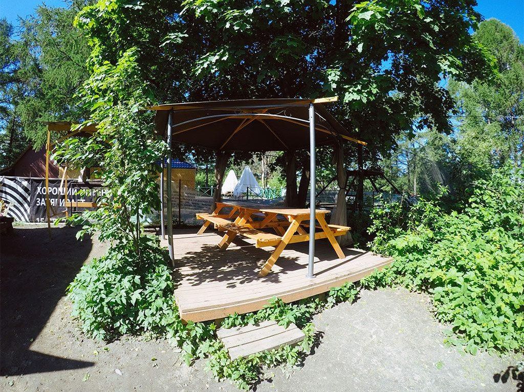 Беседка вместимостью до десяти человек, расположена недалеко от метро «Озерки». Есть столы, стулья, мангал, уголь и розжиг. К беседке подведено электричество, рядом парковка.