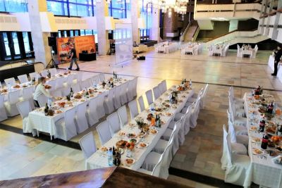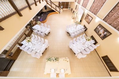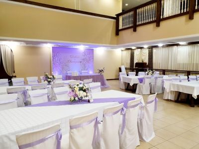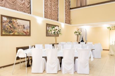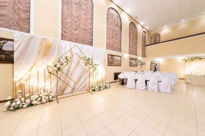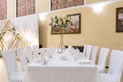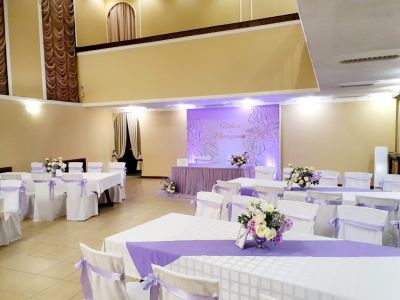 - Оформление зала в едином стиле. Для вас украсят зал воздушными шарами, цветами и другими декоративными элементами, которые создадут атмосферу праздника.