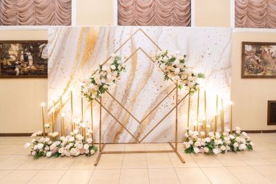 - Велком-зона для встречи гостей. Здесь можно разместить угощения и напитки, которые гости смогут попробовать перед началом мероприятия.