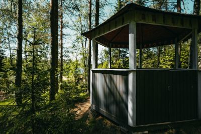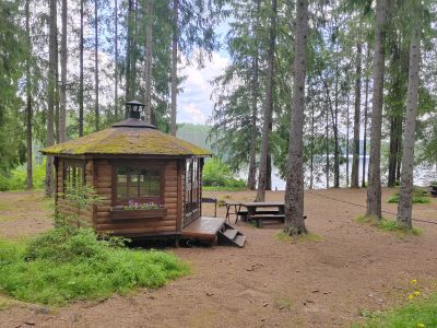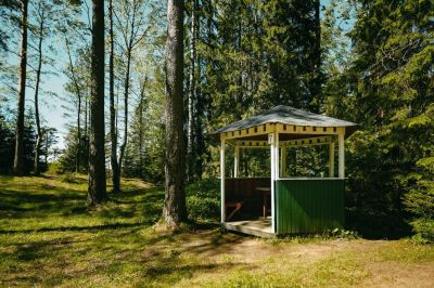 Беседка возле Пасторского озера вместимостью до 10 человек. Здесь есть всё необходимое для барбекю, мангал, шампуры и решётка для гриля. Рядом парковка.