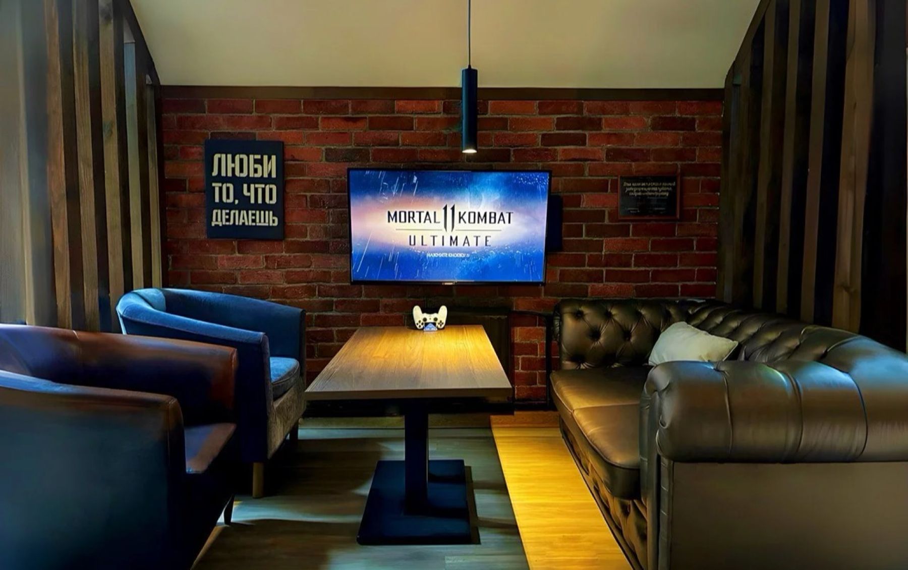 В этом пространстве имеются игровые зоны с приставками (игровая консоль PS4 и Xbox). А также есть настольные игры.